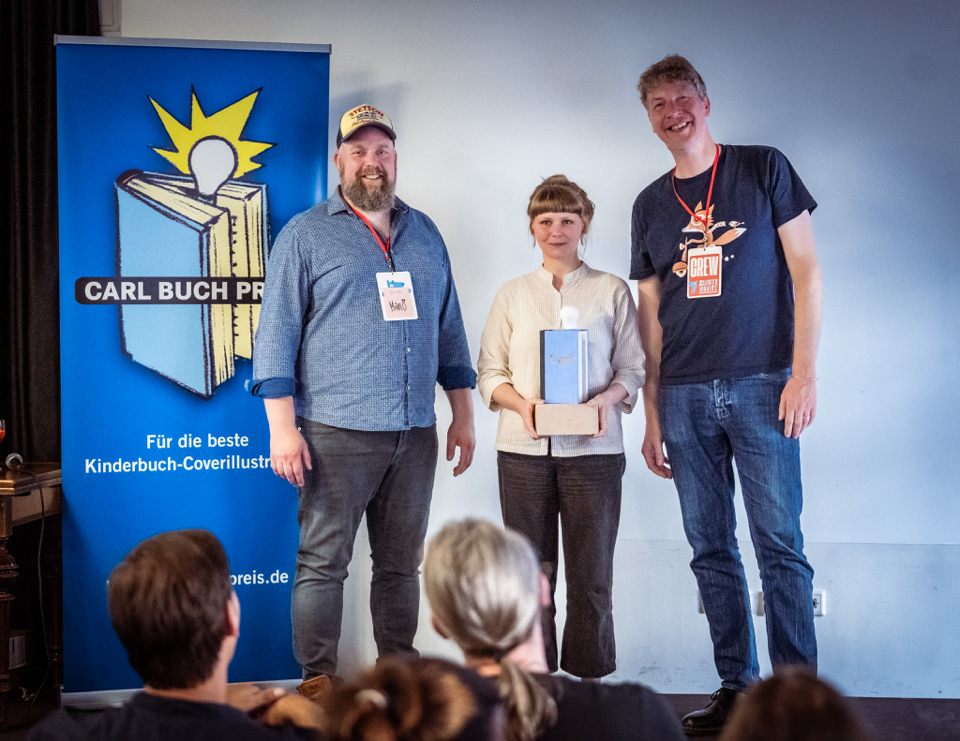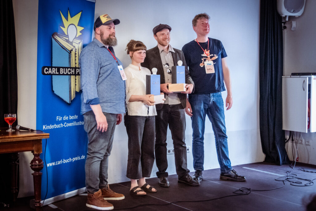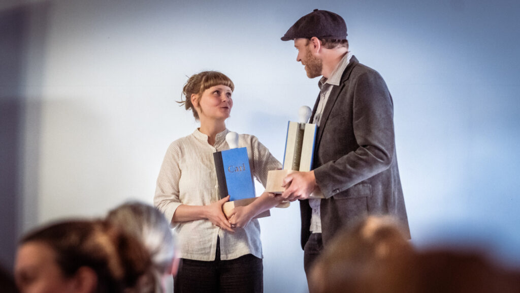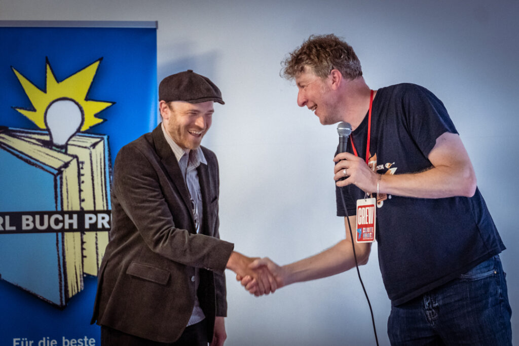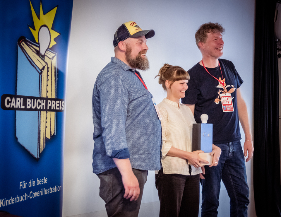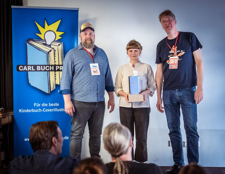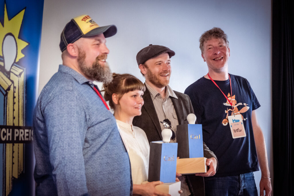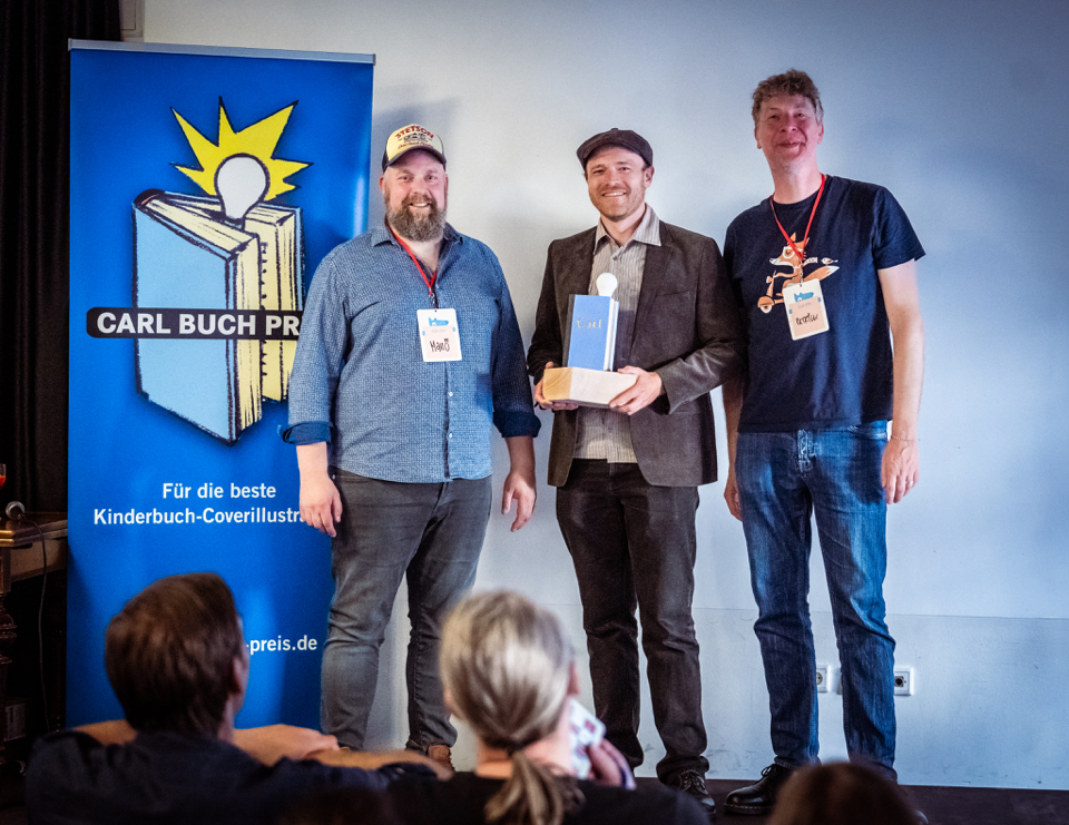 Mit der Preisträgerin 2020/21 Martina Liebig, dem Preisträger 2023 Torben Kuhlmann und dem Stifter des Preises Mano Eckhoff