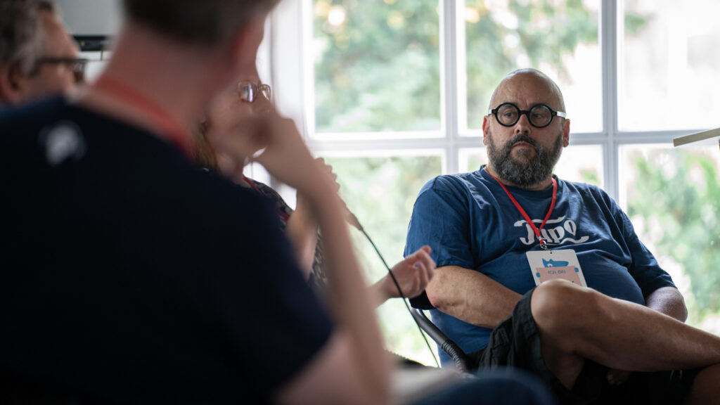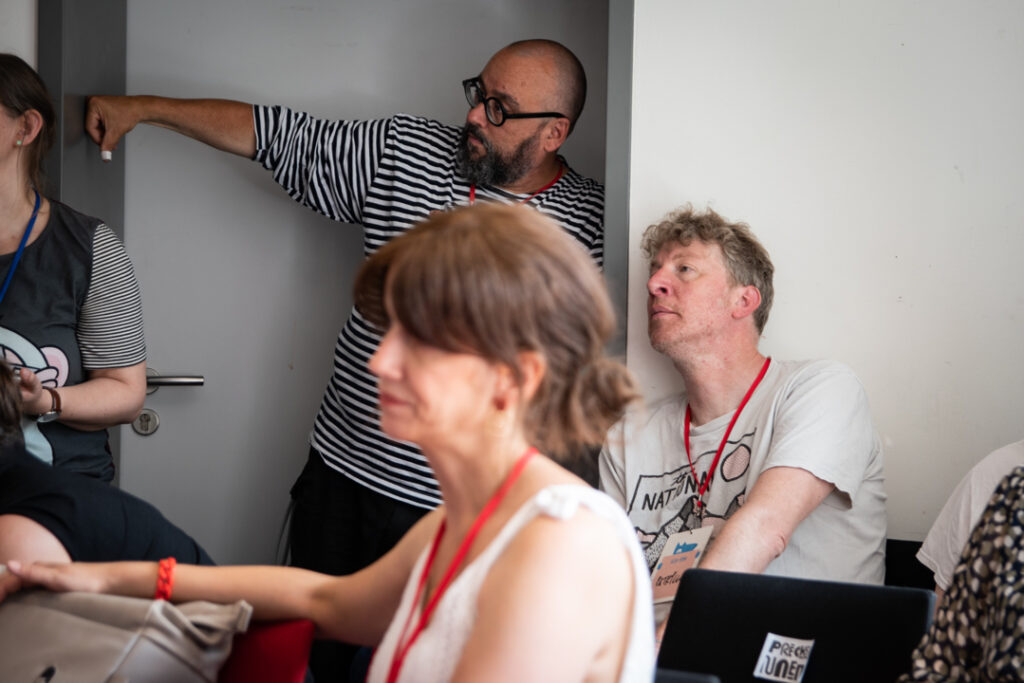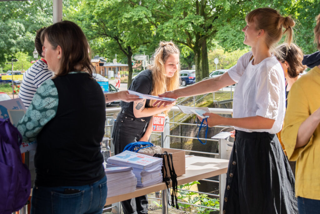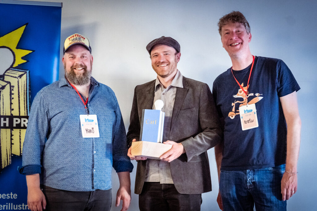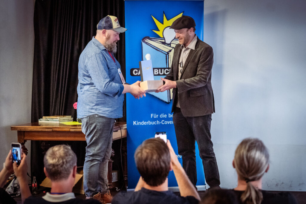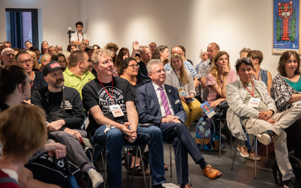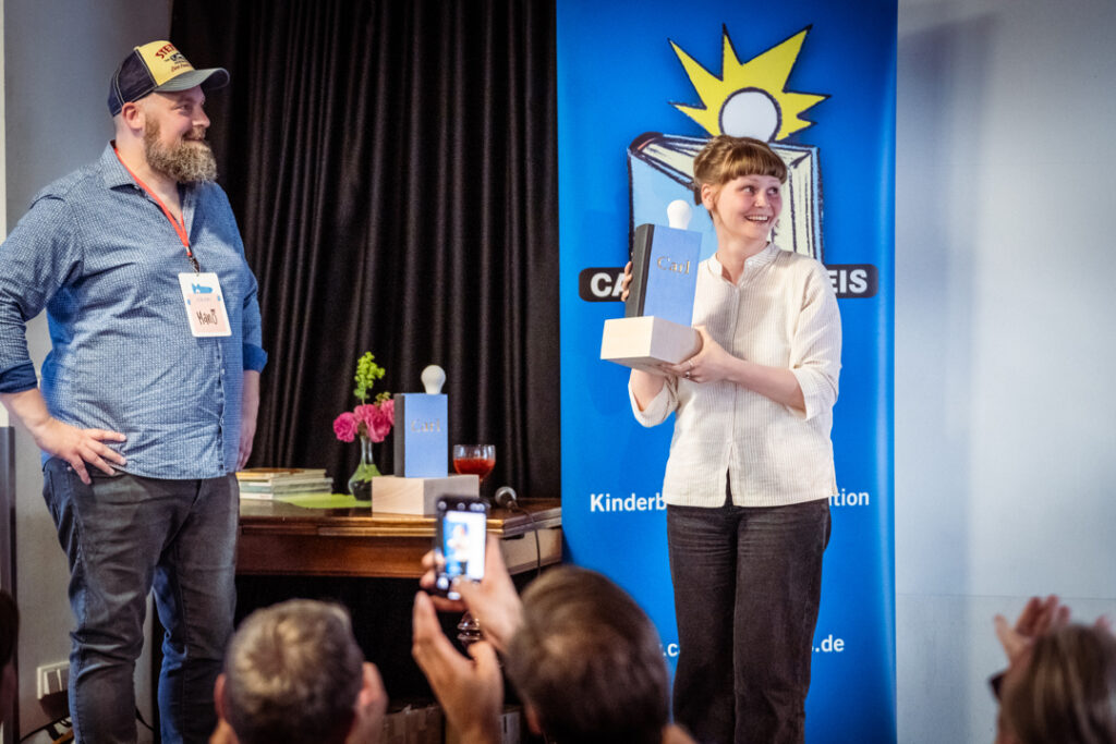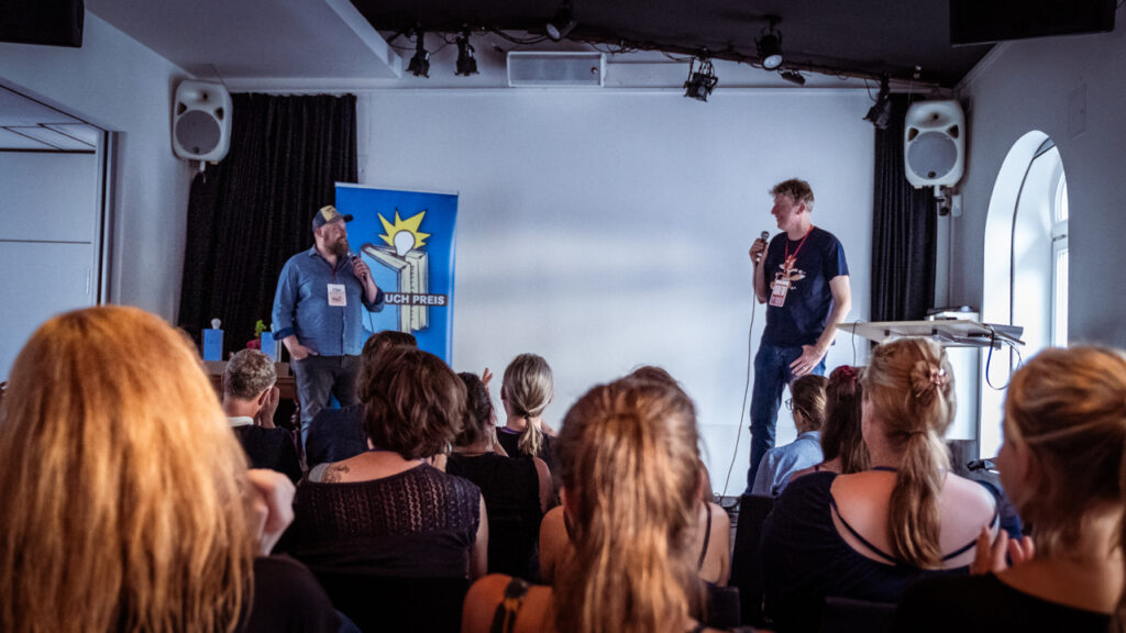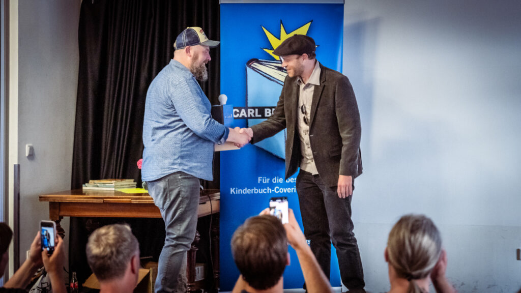 Mit der Preisträgerin 2020/21 Martina Liebig, dem Preisträger 2023 Torben Kuhlmann und dem Stifter des Preises Mano Eckhoff