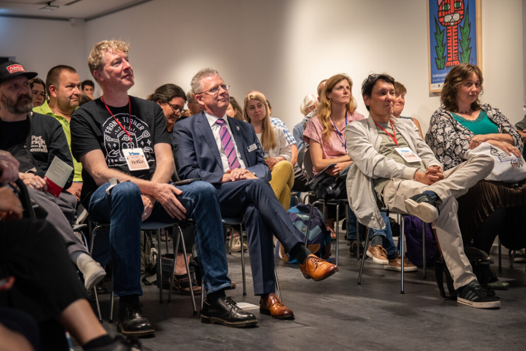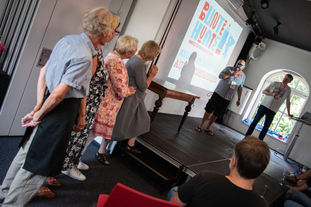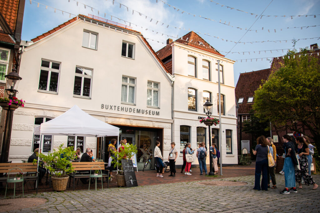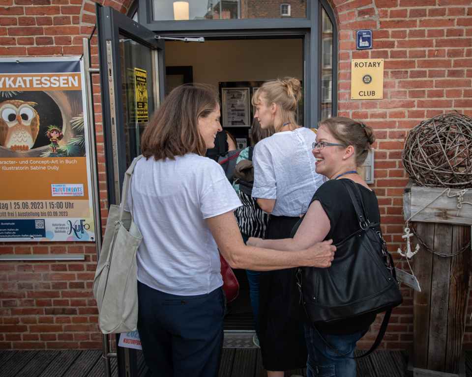 Akkreditierung bei bestem Wetter, Eröffnungsvortrag mit Dully&Dax, Eröffnung der Celestino Piatti Ausstellung im Buxtehude Museum.