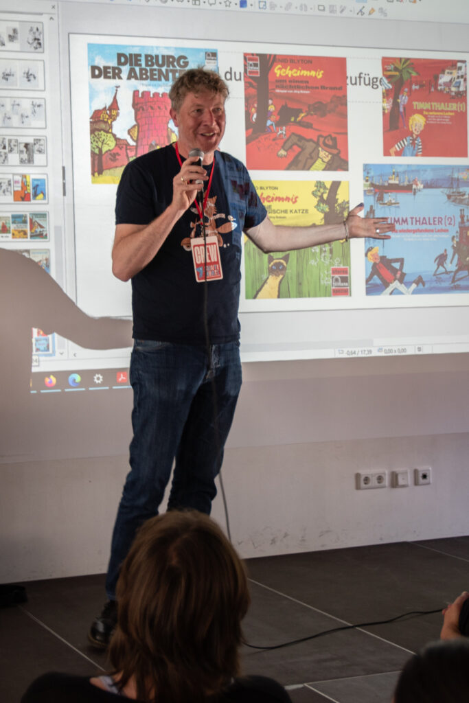Vortrag klassische Kinderbuchillustration, Vortrag Regina Kehn, Gesprächsrunde Verleger, Vortrag Dieter Braun, Gesprächsrunde Illustrator*innen, Ausstellungen Dieter Braun bei IsoVinyl und Regina Kehn in der Kleinen Fleetphilharmonie